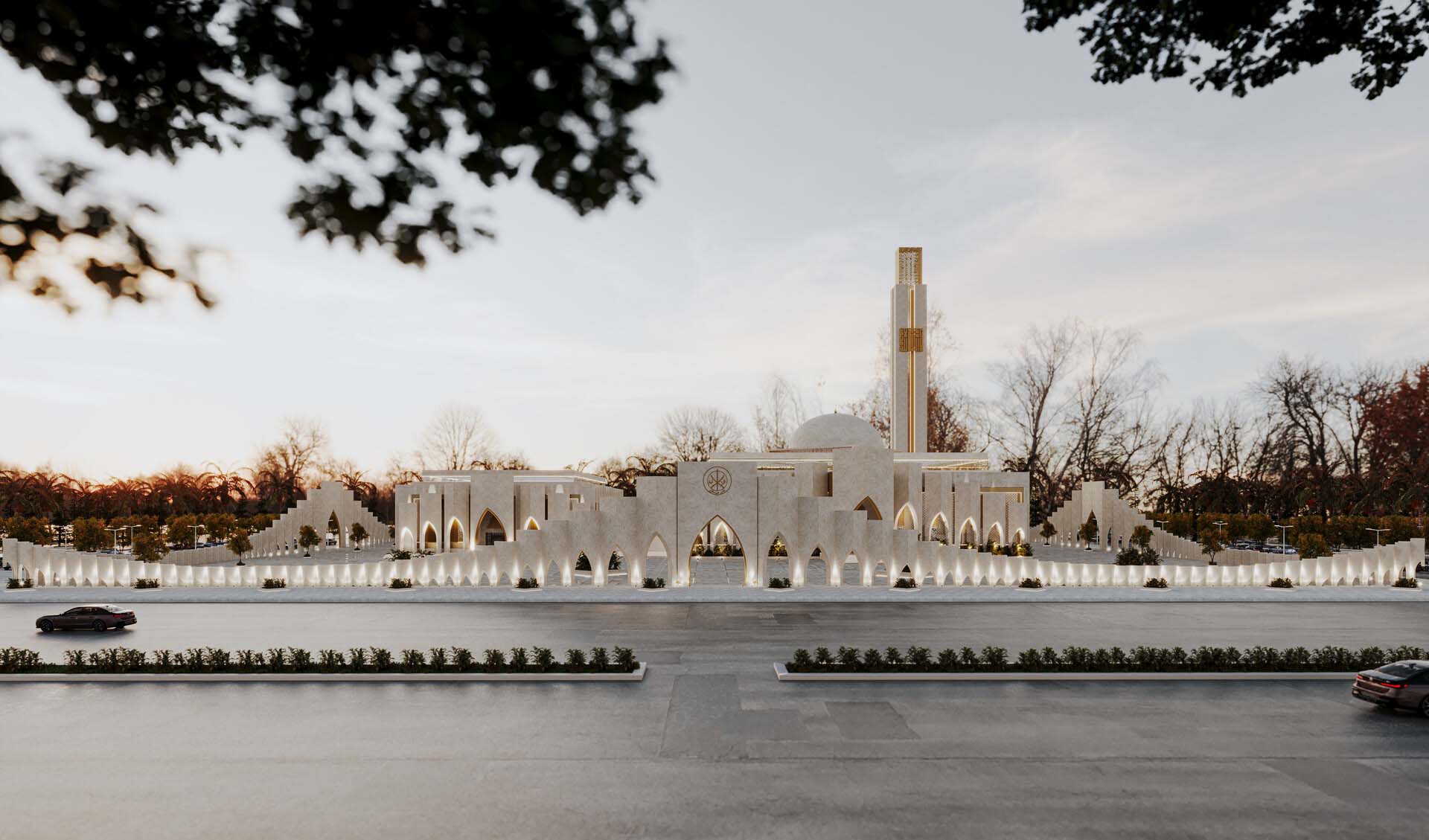 Minaret Horn Speakers – Outdoor, weatherproof horn speakers project calls to prayer across surrounding neighborhoods.